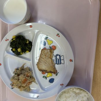 カジキの照り焼き ほうれん草としめじのソテー うの花炒り煮 ご飯 牛乳