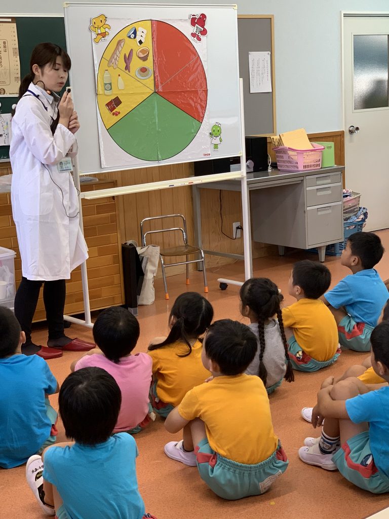 ☆ スーパーカスミの食育指導で、栄養士さんが来園下さいました。体のエネルギーとなるもの、調子を整えるもの、身体を作るものの3色色分けのお話を頂きました。そして最後にはラッシー作りをして試飲しました。ラッシーはご家庭でも簡単に作れます。作ってみてくださいね。