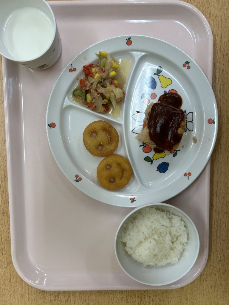 ミートローフ ツナときゅうりのレモンサラダ スマイルポテト ご飯 牛乳