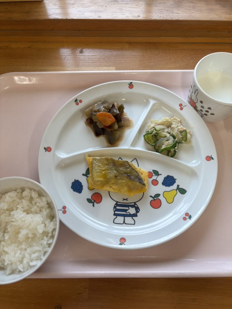 白身魚のピカタ バンバンジーサラダ ラタトイユ ご飯 牛乳