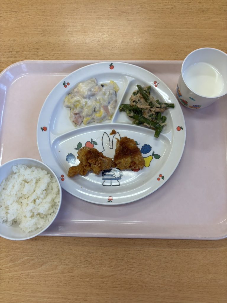チキンカツ 白菜とハムのクリーム煮 いんげんのつな和え ご飯 牛乳