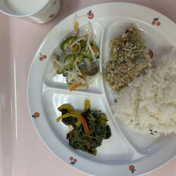 鯵の甘酢がらめ コールスローサラダ 切り干し大根とさつま揚げの煮物 ご飯 牛乳
