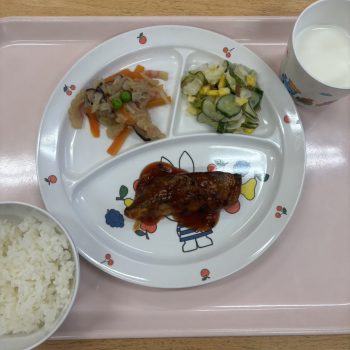 ミートソーススパゲッティ チーズサラダ 小松菜のソテー 牛乳