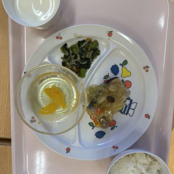 鶏の親子煮 小松菜のソテー 大根サラダ ご飯 牛乳